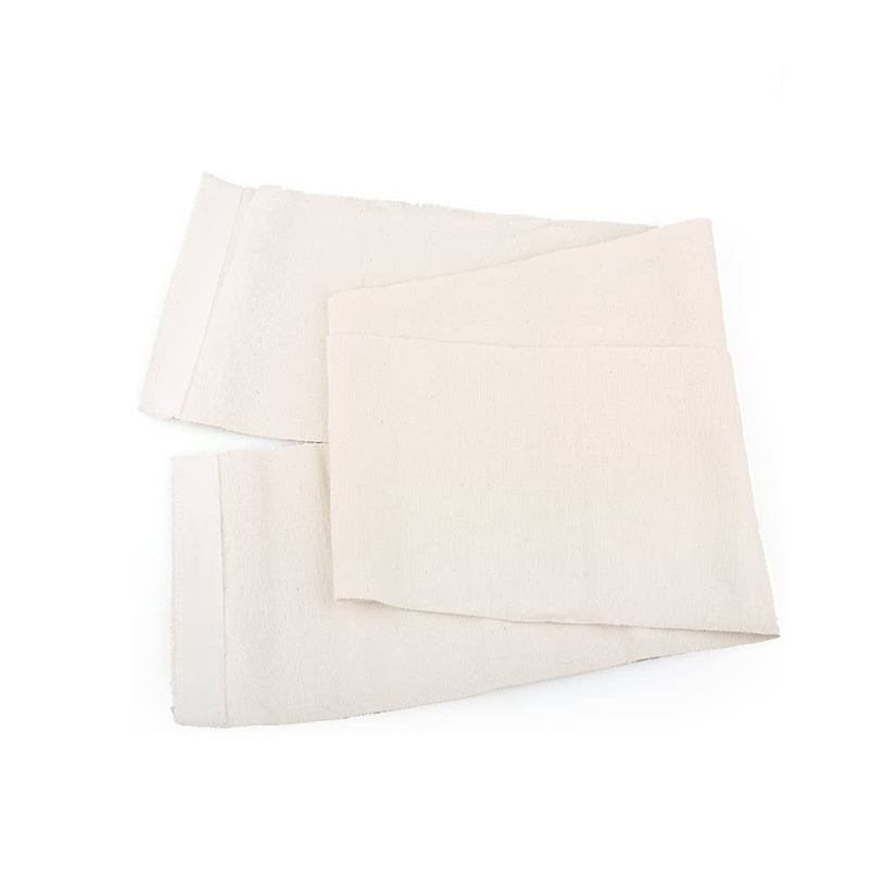 Bandagem elástica de algodão com fixador de gancho e malha nas duas extremidades, que podem ser esticadas facilmente à compressão desejada e protegidas no lugar.